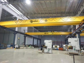 單梁、雙梁橋式起重機(jī)是橫架于車間、倉庫和料場上空進(jìn)行物料吊運(yùn)的起重設(shè)備。由于它的兩端坐落在高大的水泥柱或者金屬支架上,形狀似橋。橋式起重機(jī)的橋架沿鋪設(shè)在兩側(cè)高架上的軌道縱向運(yùn)行,可以充分利用橋架下面的空間吊運(yùn)物料,不受地面設(shè)備的阻礙。它是使用范圍最廣、數(shù)量最多的一種起重機(jī)械。LD型單梁橋式起重機(jī)技術(shù)先